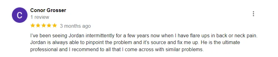 "Jordan and the team were super nice and professional and I felt immediate relief from my back and neck pain caused by sitting at a desk. The cracking sounds are the best!"