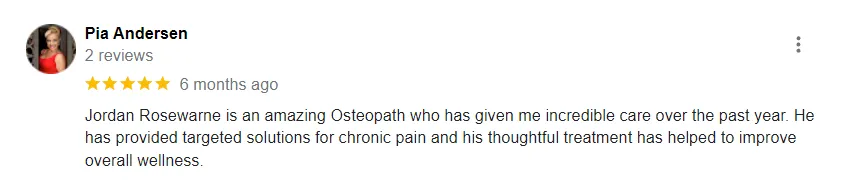 "Jordan Rosewarne is an amazing Osteopath who has given me incredible care over the past year."