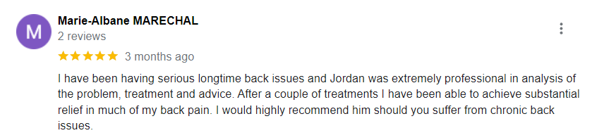 "I have been looking for an osteopath in the North Shore for my back tightness and I'm so glad I came across Kris. Will definitely be back!"